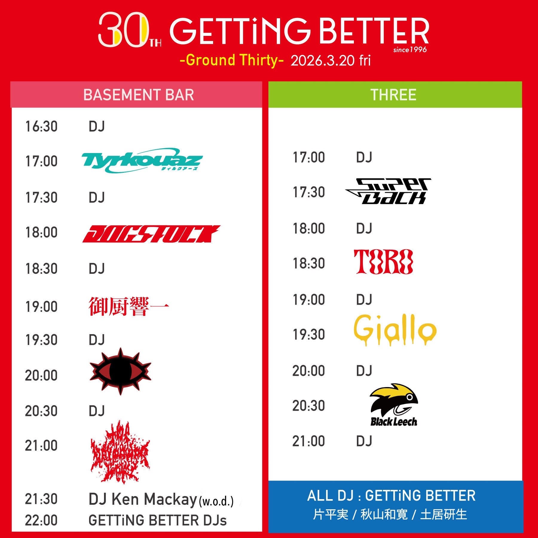 the bercedes menz / Giallo / 自爆 / SuperBack / Tyrkouaz / TORO / DOG STOCK / Black Leech / 御厨響一